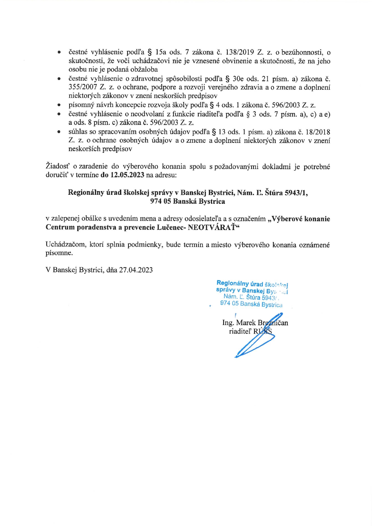 Podklady k žiadosti o pridelenie asistentov učiteľa na školský rok 2023 / 2024
